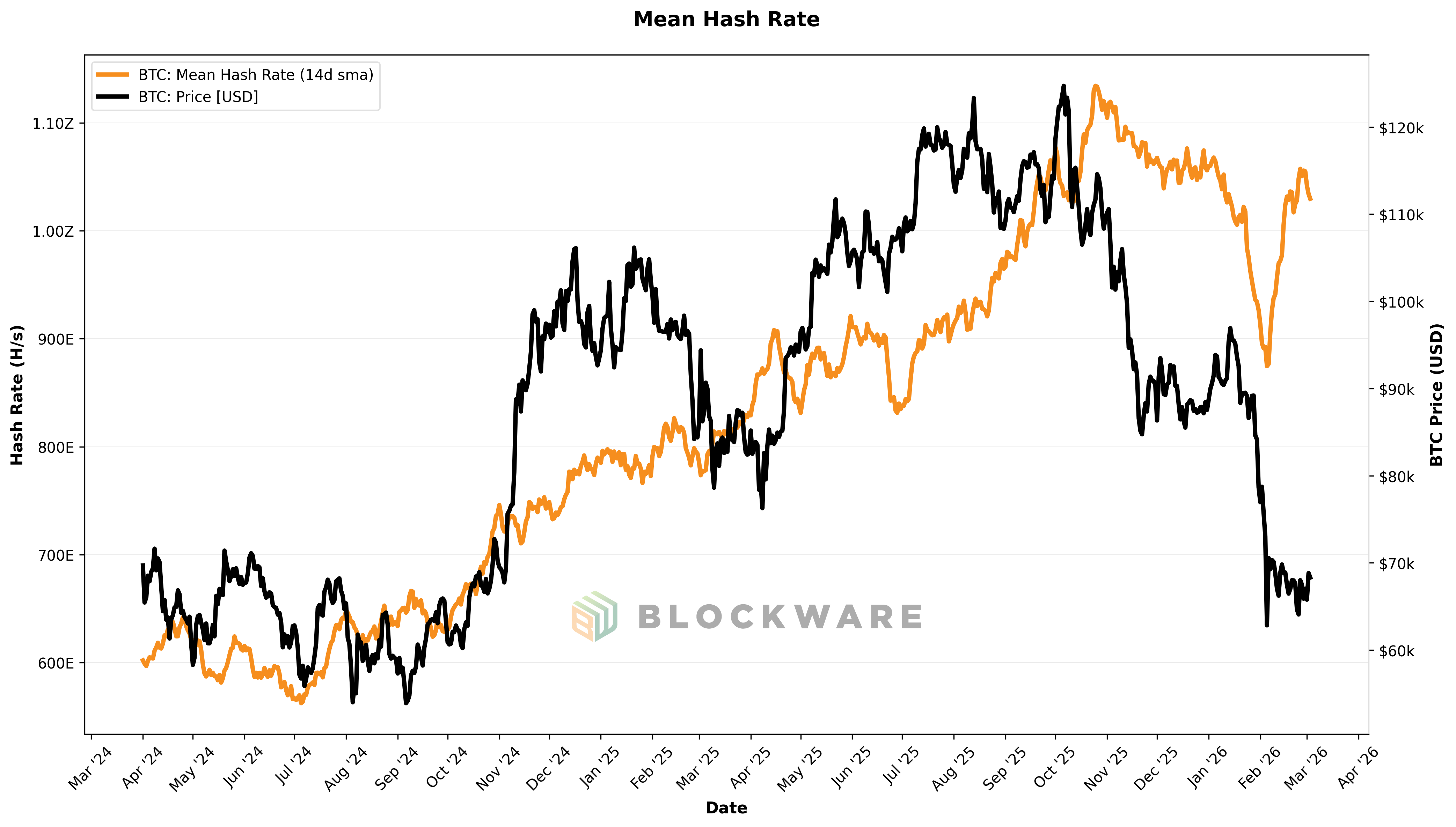 While Hash Rate has rebounded following the winter-weather-induced curtailments, it still remains ~10% below its all-time high.