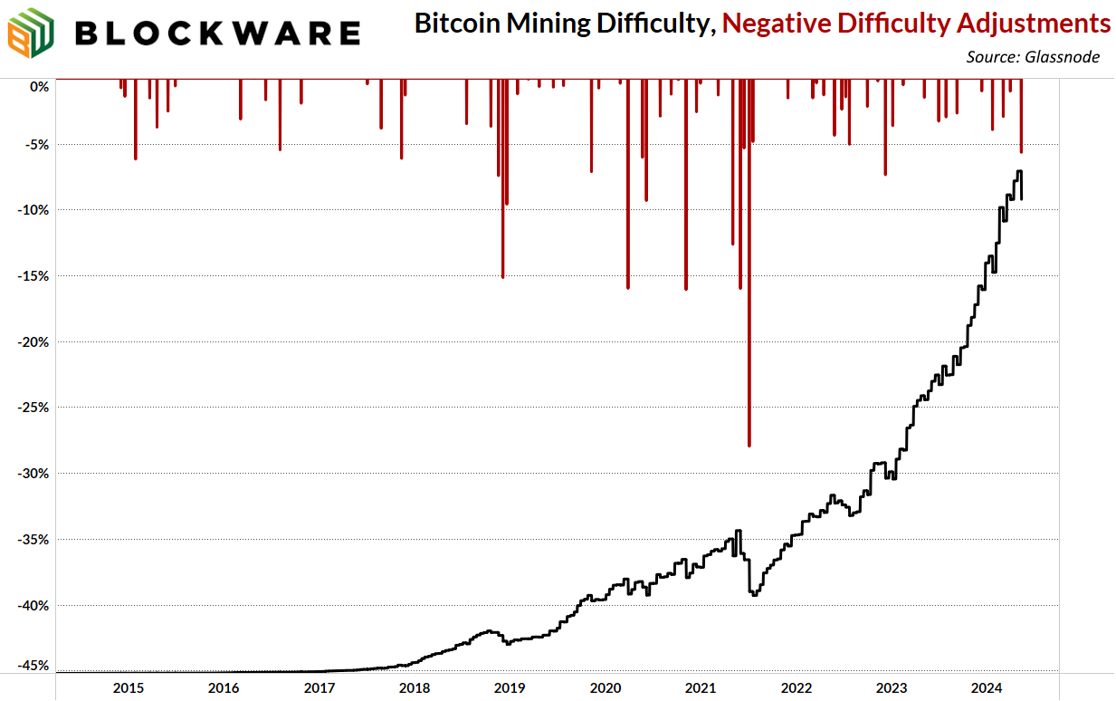 The most exciting and bullish development this week was the six percent drop in mining difficulty. This was the largest negative difficulty adjustment since December 2022 when the price of BTC was at ~$16,000.