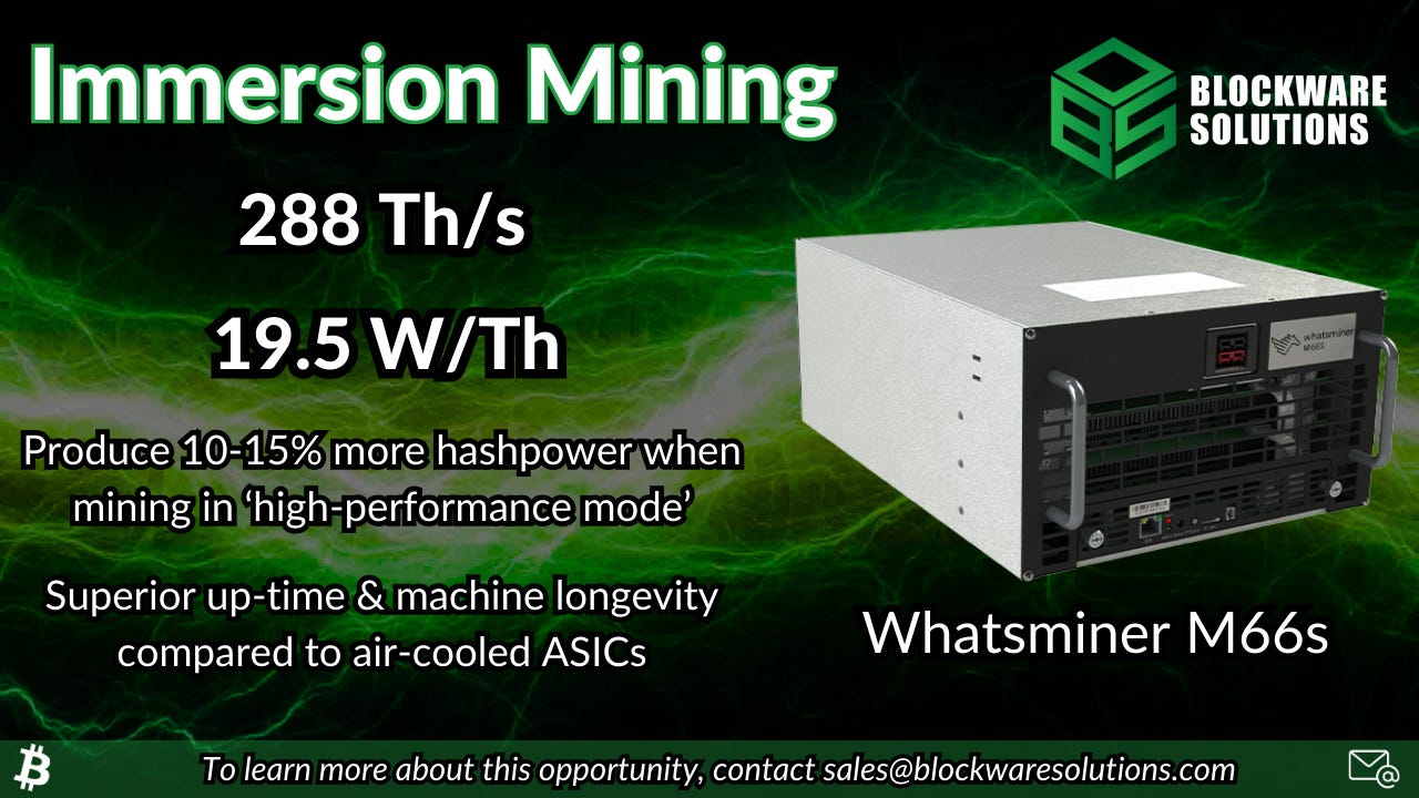 Blockware has partnered with a world-class immersion mining facility to bring you the opportunity to mine using the Whatsminer M66s.