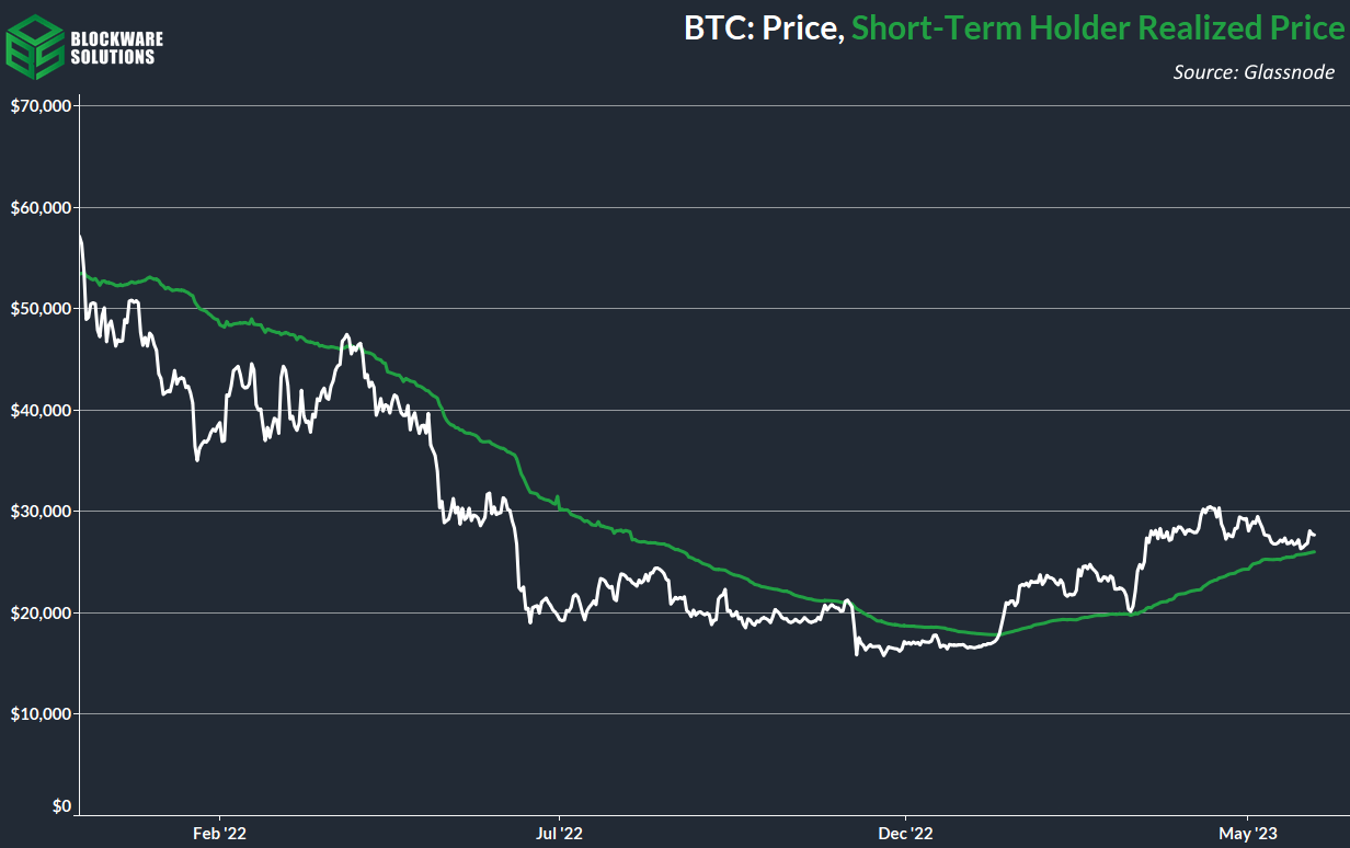 BTC is confidently holding above support at the aggregate cost-basis (realized price) of short-term holders. As STH RP continues its slow trend upwards, it is likely that BTC will, at a minimum, follow a similar path.