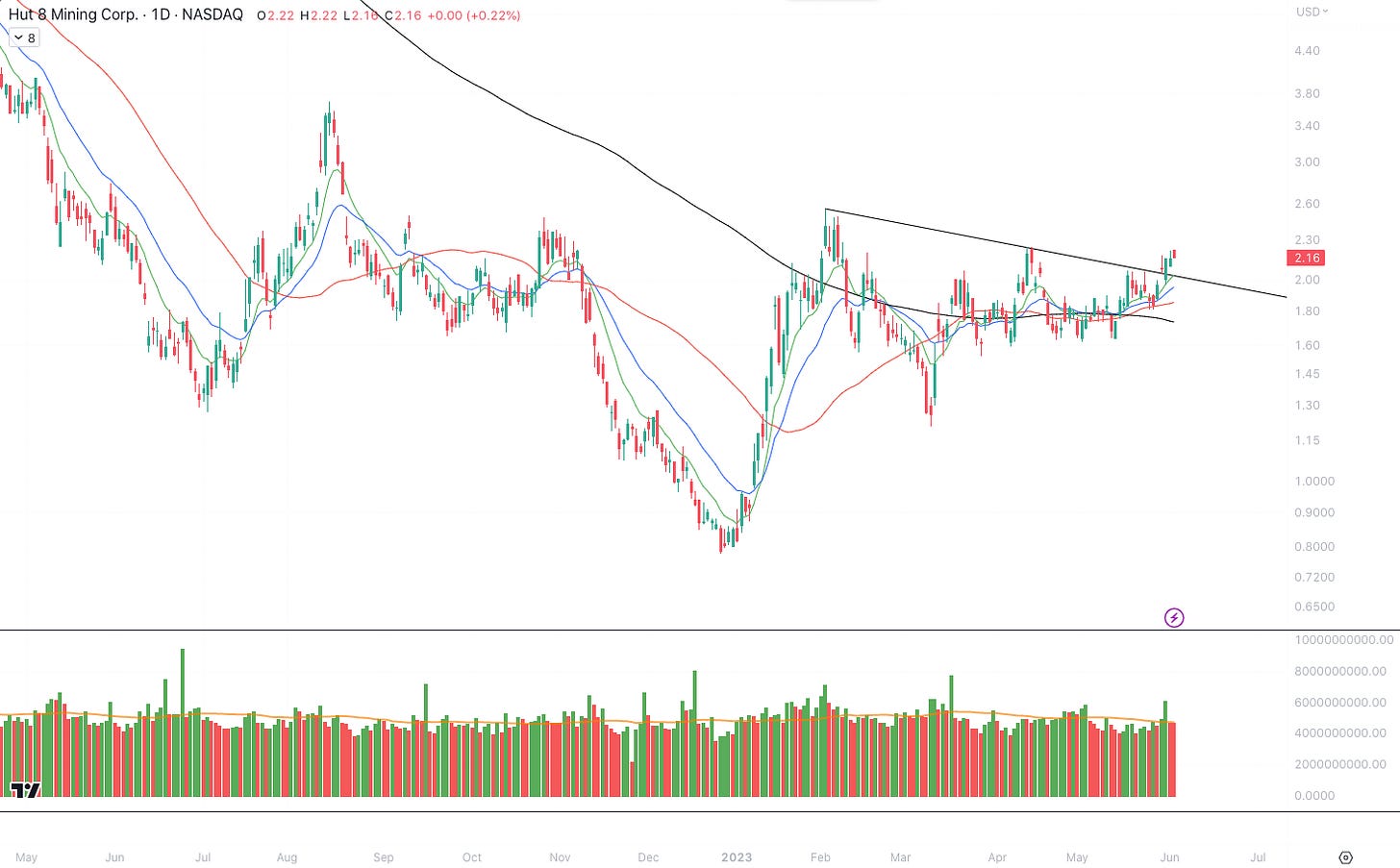 Hut 8 is currently up 9% on the week, and is closing in on QTD highs at $2.24. Other names that are standing out include: COIN, BTBT, MARA, RIOT, CLSK, HIVE, and APLD.