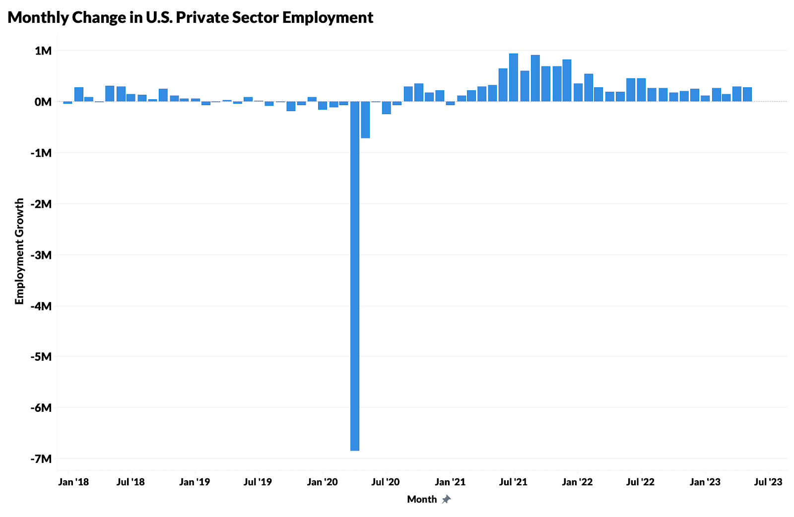 On Thursday morning we received the ADP’s employment number for the month of May. This data showed that the private sector added 278,000 jobs last month.
