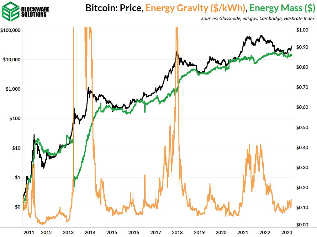 The following chart is based on a previous Blockware Intelligence Report that models the relationship between Bitcoin's price and its production cost. The model makes it easy to visualize when the price of Bitcoin is overheated or bottoming.