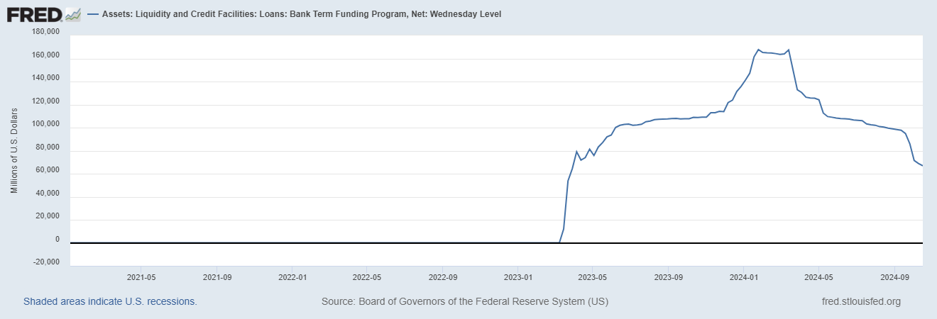 The Fed launched this as a 1-year program, likely with the expectation that Fed Funds rate cuts would bring treasury rates down and bring the underwater bonds back into the green. Prior to the closing of this facility we saw a large jump in usage as banks got one last hit off the liquidity pipe. Now that the banks are paying back the borrowed capital with rates remaining where they are at, this could begin to spell trouble. The response from the Fed will almost undoubtedly be to re-open this facility and provide banks with as much liquidity as needed â which is bullish for risk assets.