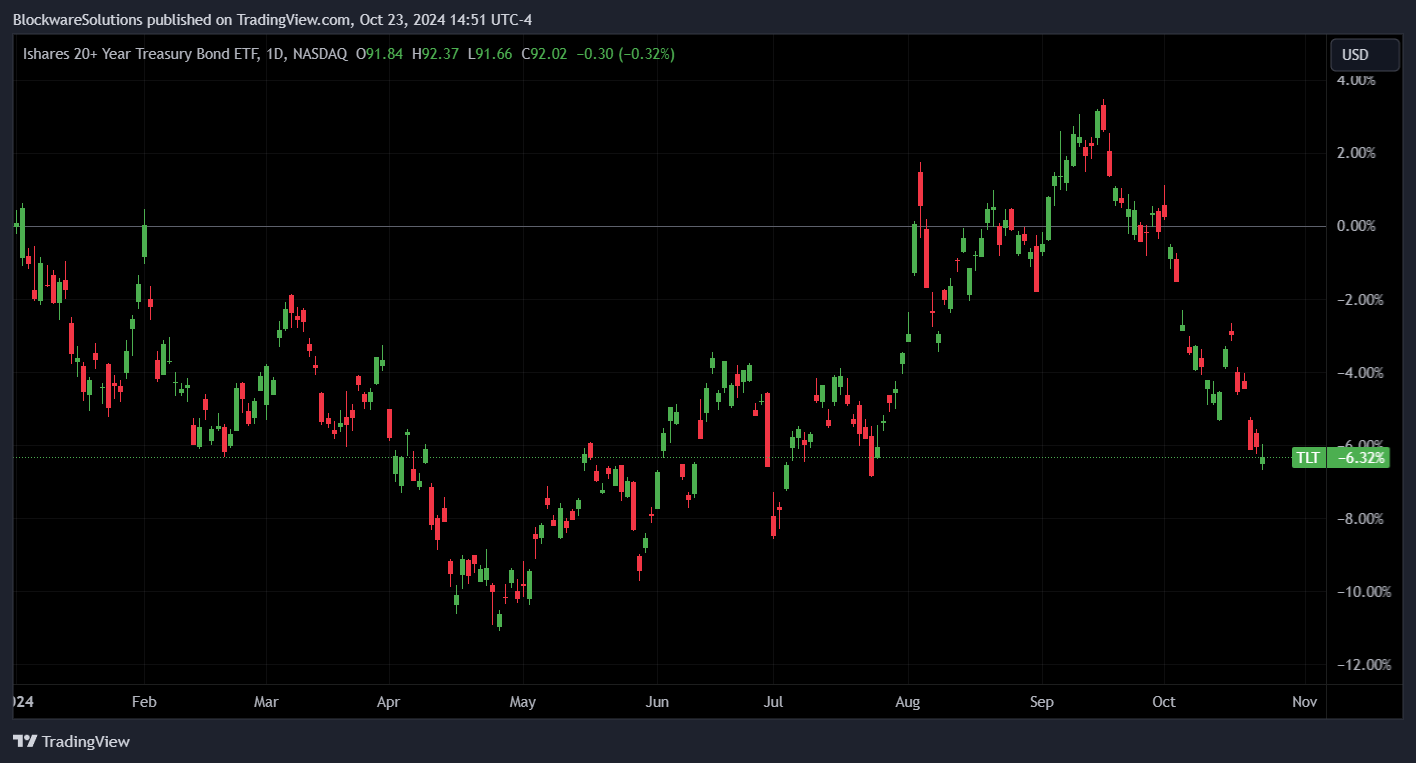 $TLT, the 20+ Year Treasury Bond ETF, is down nearly 10% since the Fed meeting, putting itâs YTD return at negative 6.3%.
