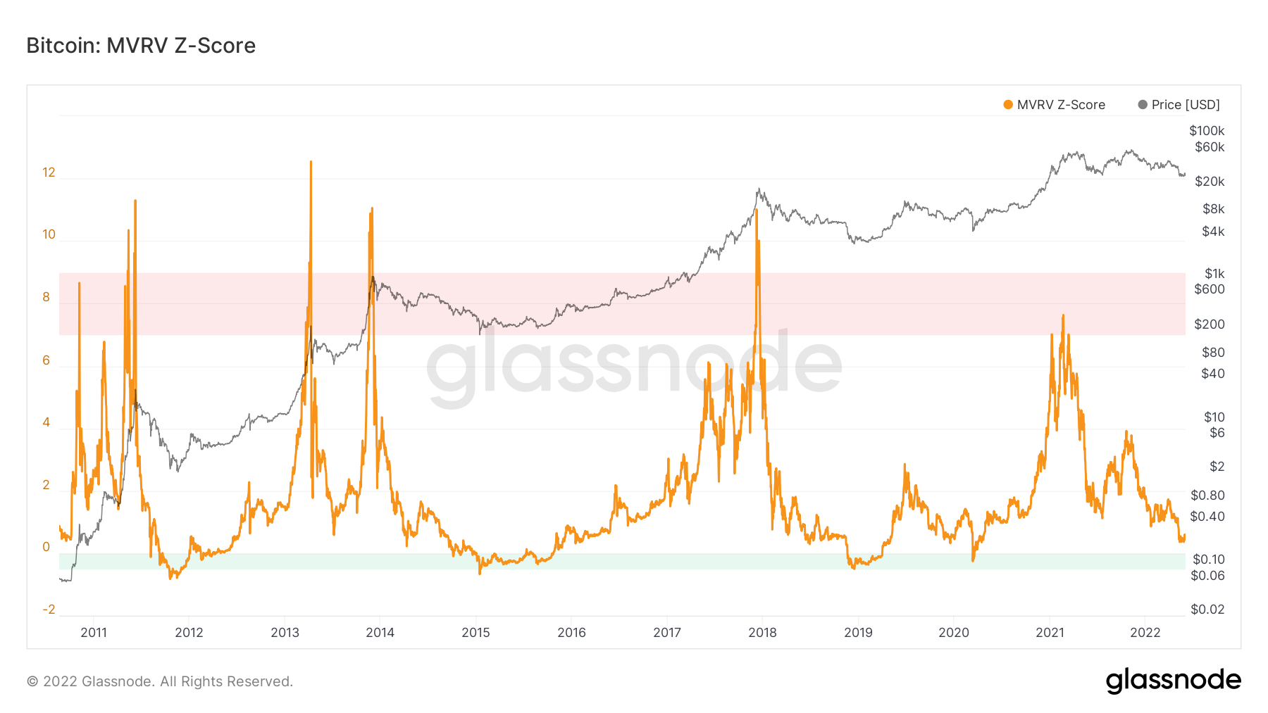 Next up we have the volatility-adjusted version of the market value to realized value ratio. Watching for that green zone below.