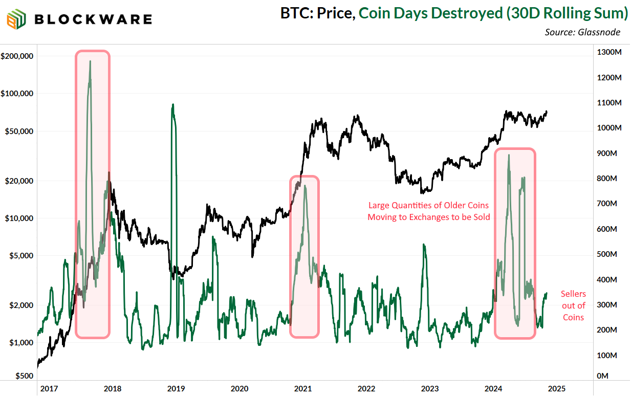 2. Coin Days Destroyed (30-Day Rolling Sum)
