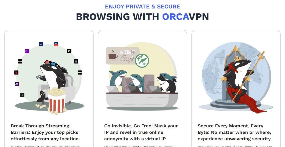 OrcaVPN is a virtual private network (VPN) service that encrypts your internet connection and hides your IP address, ensuring your online activities are private and secure.