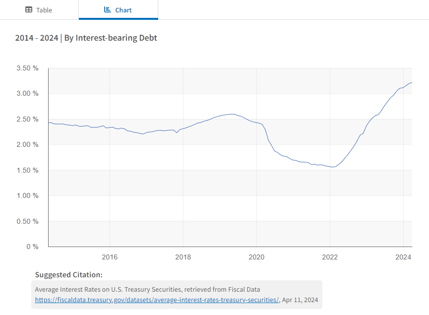 The blended average of interest rates on outstanding U.S. Treasury Securities is ~3.22%.