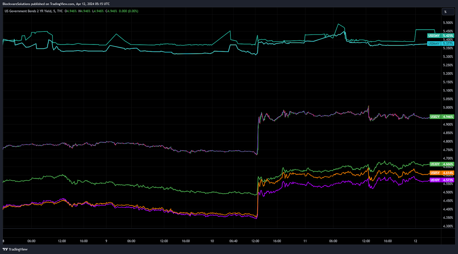 Bonds puked on the release of the CPI data; with yields surging across the board. POTUS expects rate cuts this year, but bond investors are not quite as confident. We’ll need to see lower inflation data (unlikely) or direct Fed posturing before we can have a high degree of confidence as to the timeline of rate cuts. The Fed has repeatedly pointed to stubbornly high inflation data this year, and the market has seemingly begun shifting it’s outlook on rate cuts this year.