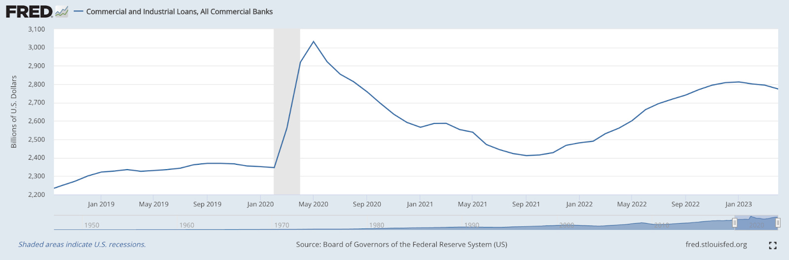 With interest rates being continuously raised over the last ~14 months, credit worthiness has steeply declined. Banks have now begun to offer less credit to businesses and consumers alike.