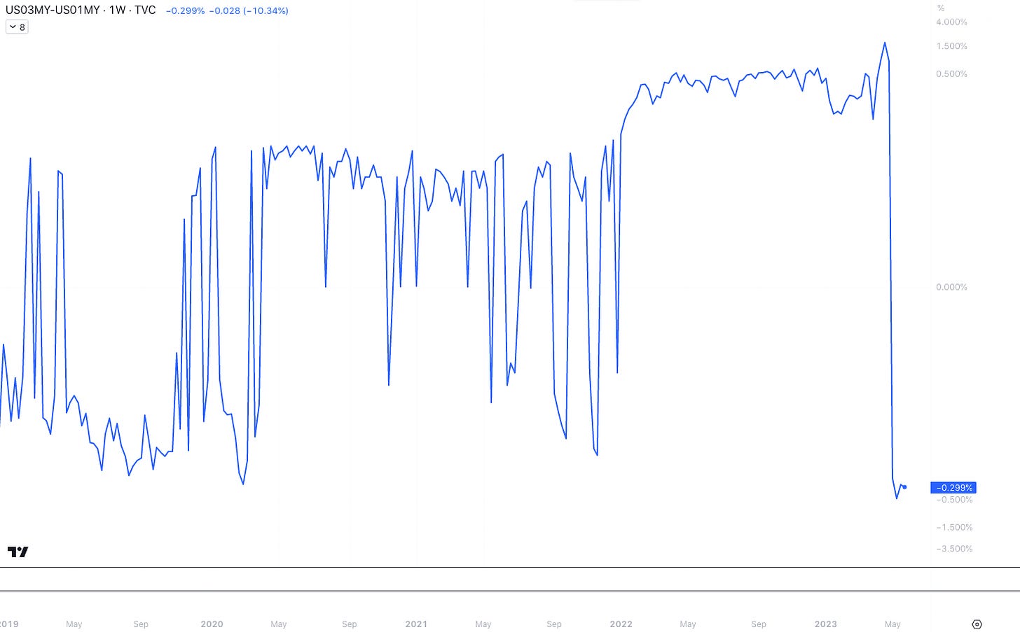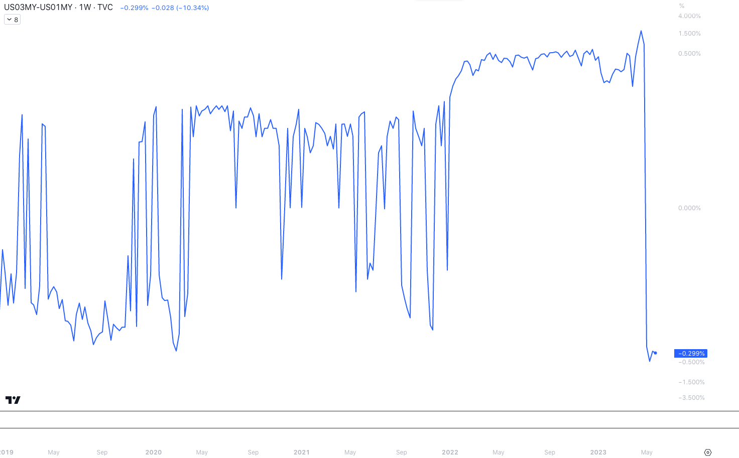 US 3-Month/1-Month Treasury Spread, 1W (Tradingview)