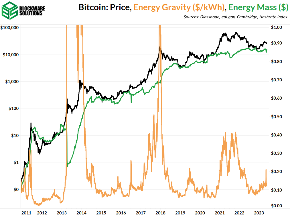 The presented chart, which is based on a Blockware Intelligence Report, depicts the correlation between Bitcoin's production cost and its market price. The model facilitates the identification of overbought or oversold market conditions for Bitcoin, making it a valuable tool for visualizing price trends.