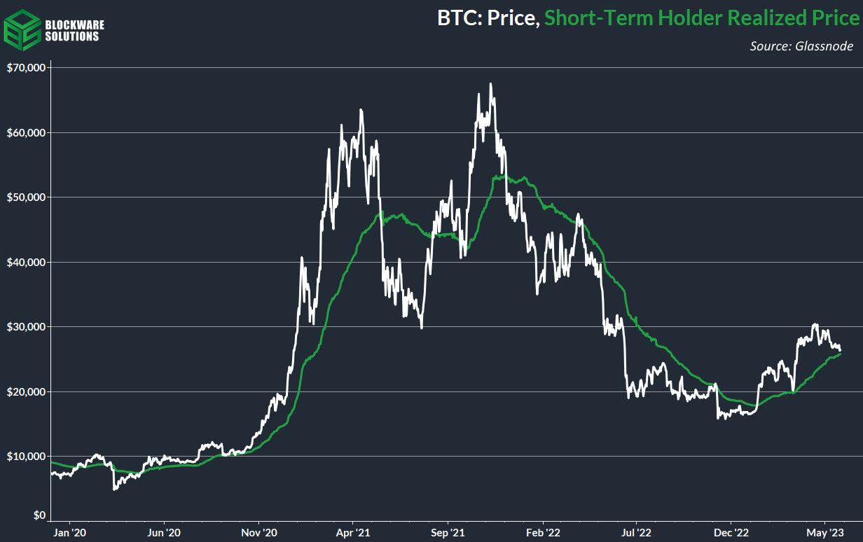 After two months of sideways/downward price action, BTC is nearing a test of support for the second time in 2023. In March of this year, BTC found support at short-term holder realized price (cost basis) at the ~$20,000 mark. BTC ripped 40% off of that level in the matter of a week.