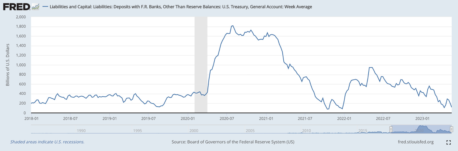 Due to ongoing negotiations in Congress, the Treasury’s General Account held at the Federal Reserve has been depleted quite significantly. The Treasury now has roughly $70 billion in cash remaining in their General Account.