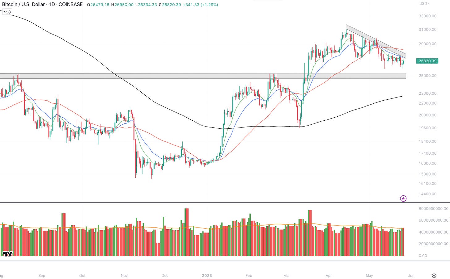 Bitcoin appears to have found support around $25,800, our team has eyes on $28,000 to confirm a new short-term uptrend underway.