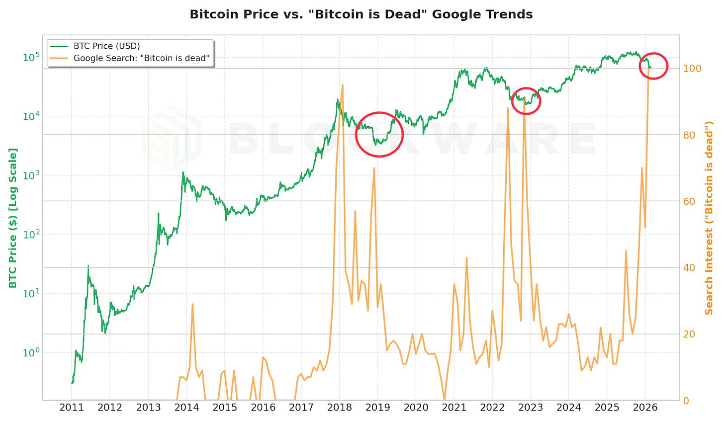 Bitcoin is “dead” yet again — according to google search results that is. Google searches for “Bitcoin is Dead” hit a new all-time high; breaking the record previously set at the bottom of the 2022 bear market.