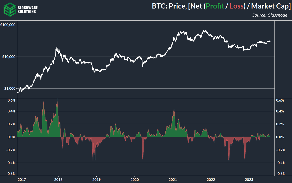 11. Net Realized P/L as a % of Market Cap. The market as a whole remains in a regime of net profit taking. However, on a market cap adjusted basis, very few profits are being realized which indicates those deepest “in the money” are continuing to HODL.