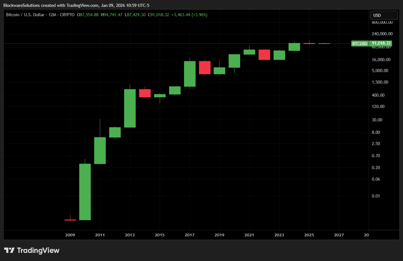 Bitcoin officially closed 2025 with a negative performance. With that, the once consensus view of a “4 year cycle” has been finally put to rest. Bitcoin is officially entering uncharted territory where past performance will provide little to no impact on future expectations.