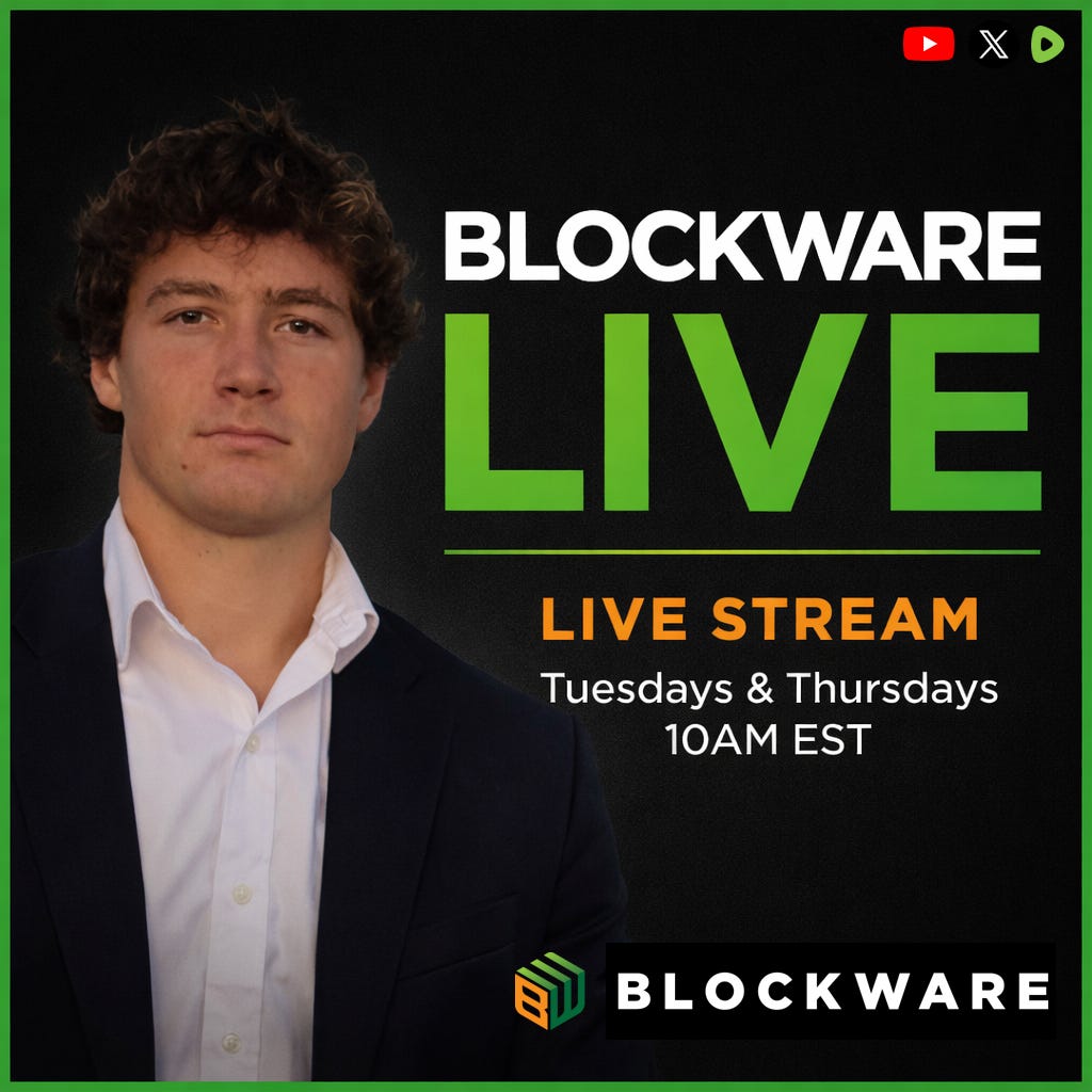 We’ll be discussing all of these topics in-depth this week as we kick off ‘Blockware Live.’ We will be live every Tuesday and Thursday at 10am EST on YouTube, X, and Rumble to discuss breaking news in Finance and Bitcoin.