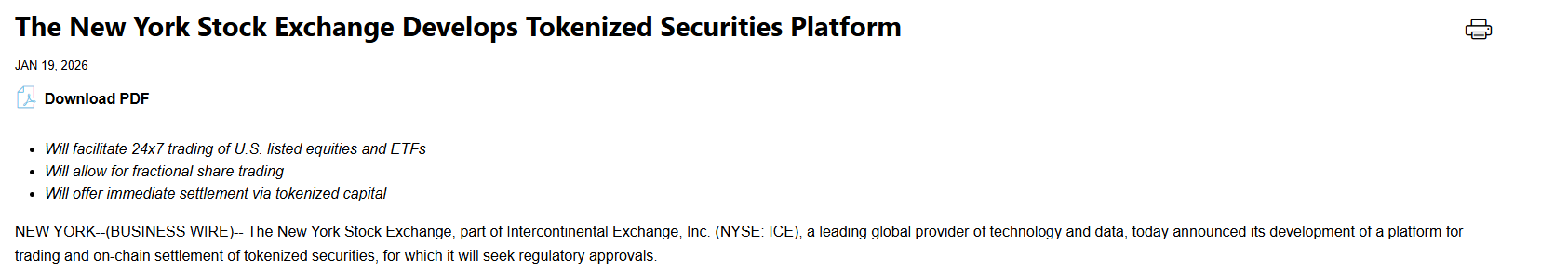 NYSE to Begin Trading 24/7 on “Tokenized” Platform