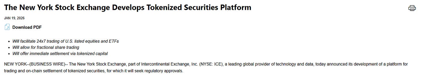 Greenland Tariffs, NYSE to Trade 24/7, and The "Perpetual Bitcoin Machine"