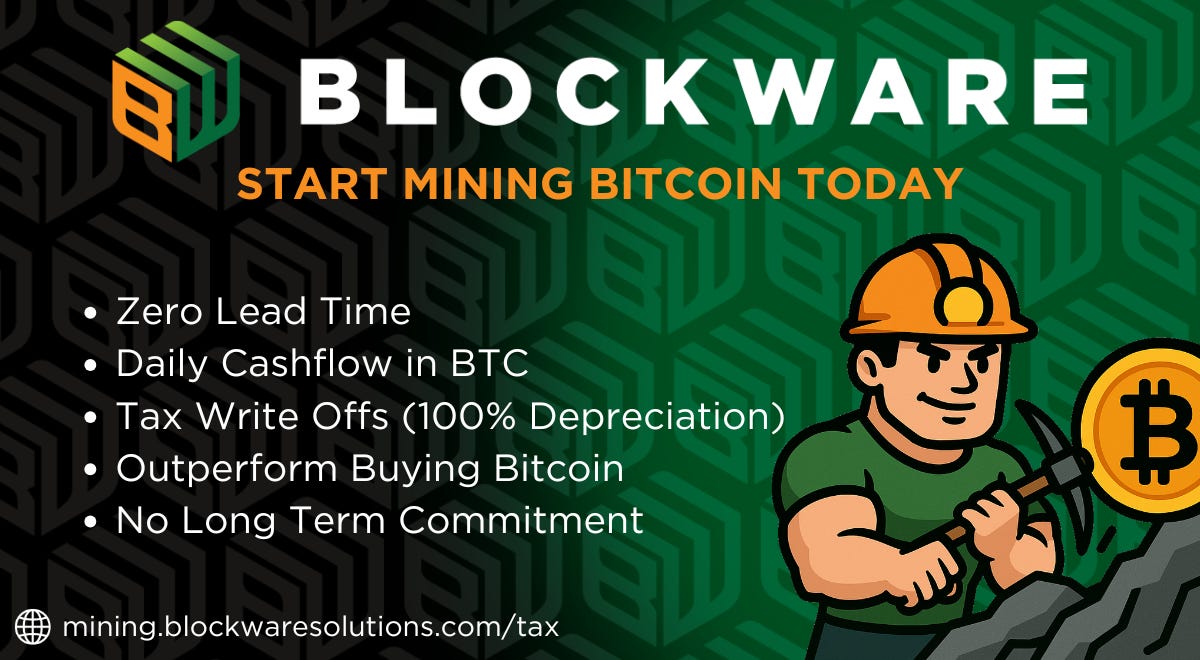 Additionally, Blockware clients, because they own the machines directly (rather than a security) are able to benefit from 100% Bonus Depreciation — you can write off 100% of the cost of mining hardware in a single tax year. This makes Bitcoin Mining arguably the best “tax-write off + cash flow” strategy for entrepreneurs and investors.