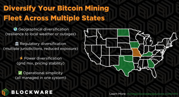 We’re thrilled to announce the addition of a new partnered mining facility in Missouri. This expansion gives Blockware clients an operational advantage with the ability to spread their mining fleet across multiple states. Let’s talk about it…