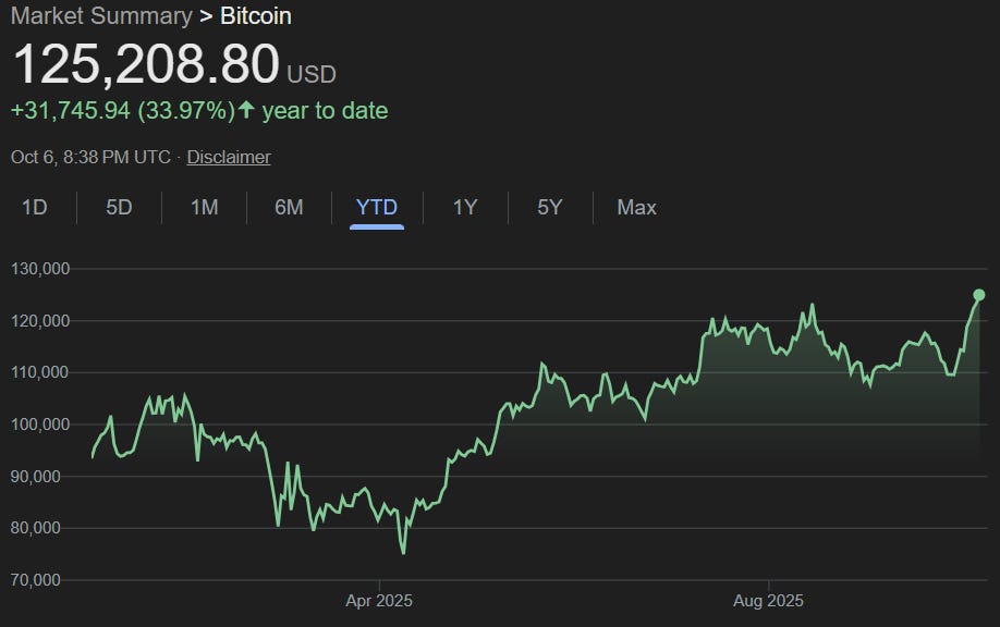 With almost zero fanfare, Bitcoin has reached a new all-time high; briefly tapping $126,000. On a year-to-date basis Bitcoin is up 33%, but you wouldn’t know it if all you were going off was retail investor sentiment (based on the lack thereof).