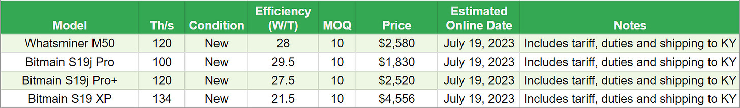 Below are the lowest current listing prices on the Blockware Marketplace for a variety of popular ASIC models: