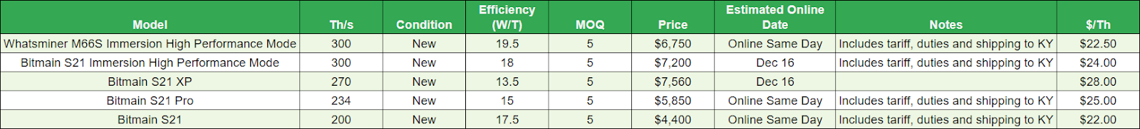 The table below provides a full pricing list for all the ASICs available through Blockware at this time. For those seeking to purchase ASICs in bulk (with or without hosting), contact sales@blockwaresolutions.com or reach out here.