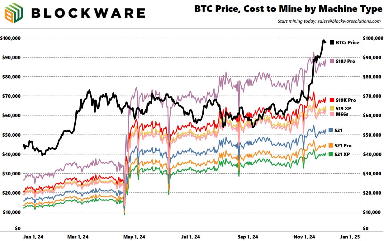 Here’s an updated chart on the cost to mine 1 BTC based on machine type and an electricity rate of $0.078/kWh.