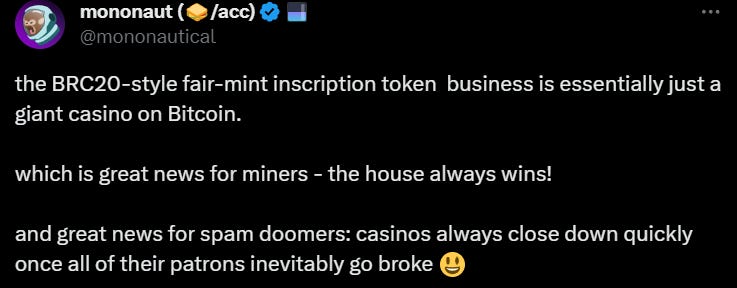 @Mononautical on Twitter (X) accurately described the BRC20 phenomenon.