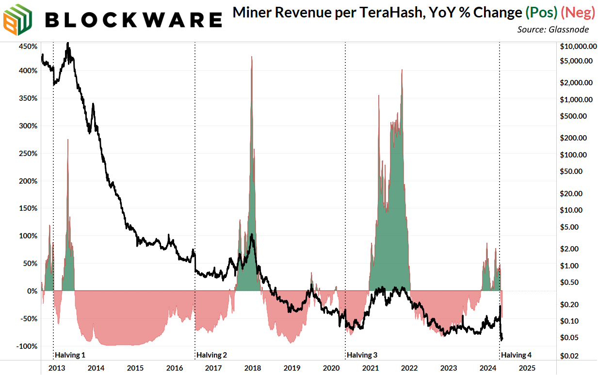 It’s been almost a month since the halving, and it appears that hashprice has found solid support at ~$0.05/Th/Day.