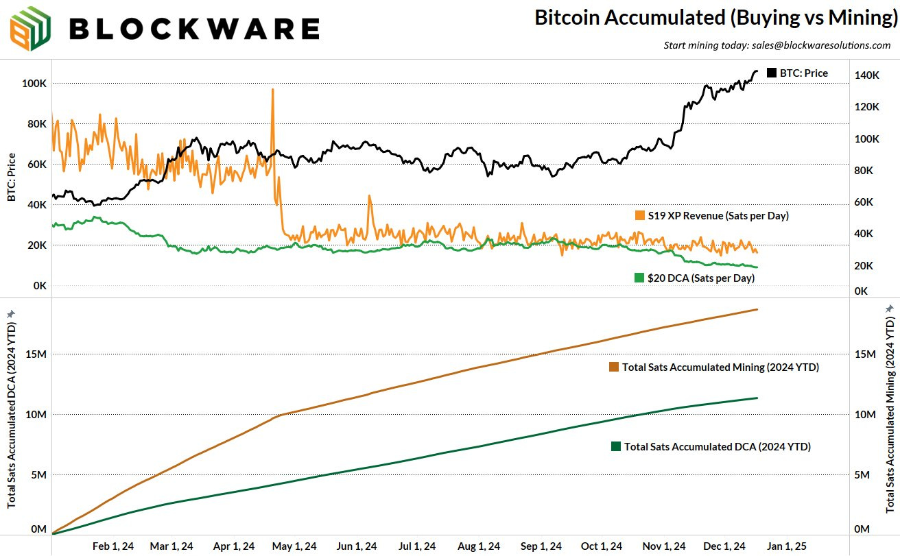 In 2024, mining accumulated 63% more Bitcoin than a dollar-cost averaging strategy.