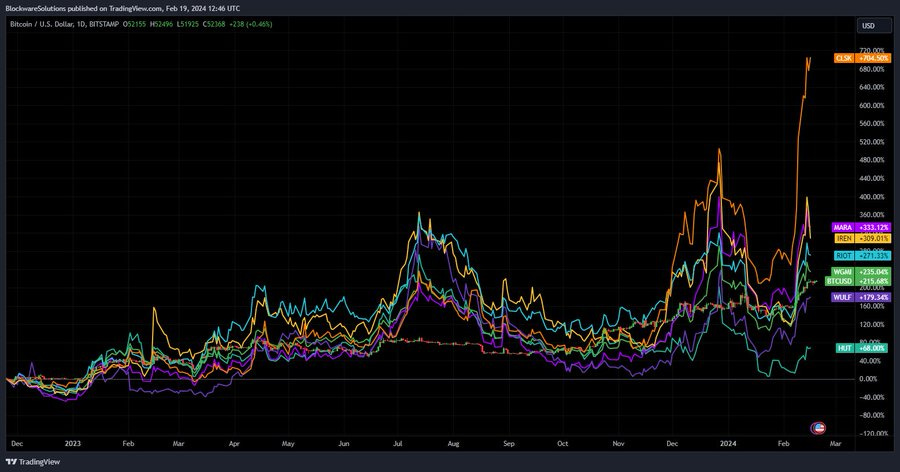 Since the cycle bottom in November 2022, most of the publicly traded Bitcoin mining companies have outperformed spot BTC.