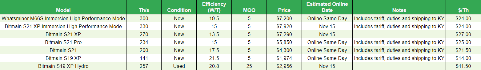 The table below provides a full pricing list for all the ASICs available through Blockware at this time. For those seeking to purchase ASICs in bulk (with or without hosting), contact sales@blockwaresolutions.com or reach out here.