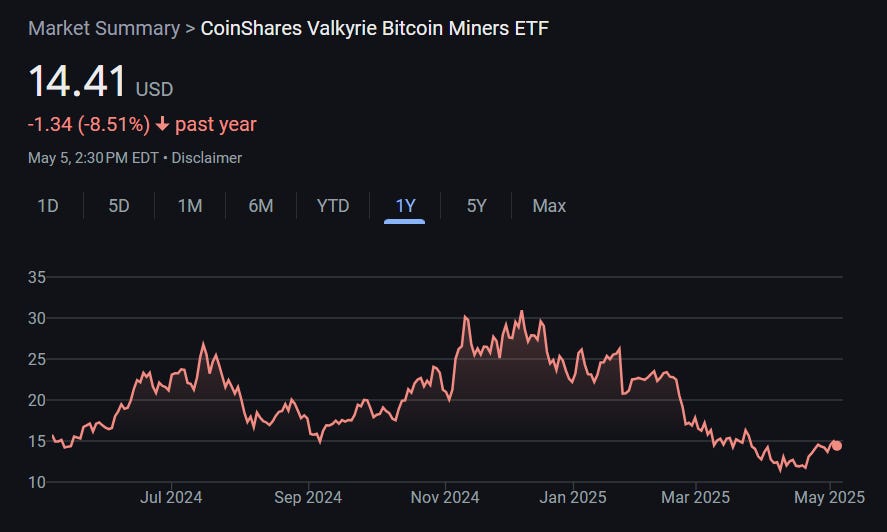 In light of the many ‘Bitcoin Treasury Companies’ that have emerged over the past year, the underperformance of many Bitcoin Mining stocks has been brought into question. $WGMI, the Bitcoin Miner ETF, is down almost 10% year-over-year.